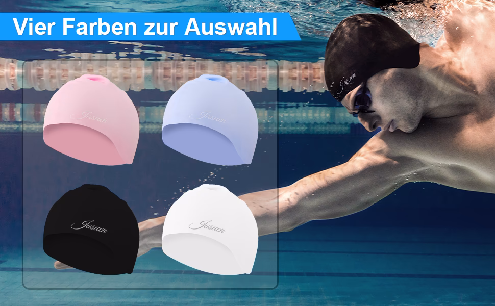 - Vorteile: Bieten die beste Wasserdichtigkeit, sind sehr langlebig, widerstandsfähig gegen Chlor und UV-Strahlung. Sie passen sich gut der Kopfform an und sind in vielen Farben und Designs erhältlich. Ideal für regelmäßige Schwimmer und Wettkämpfe.