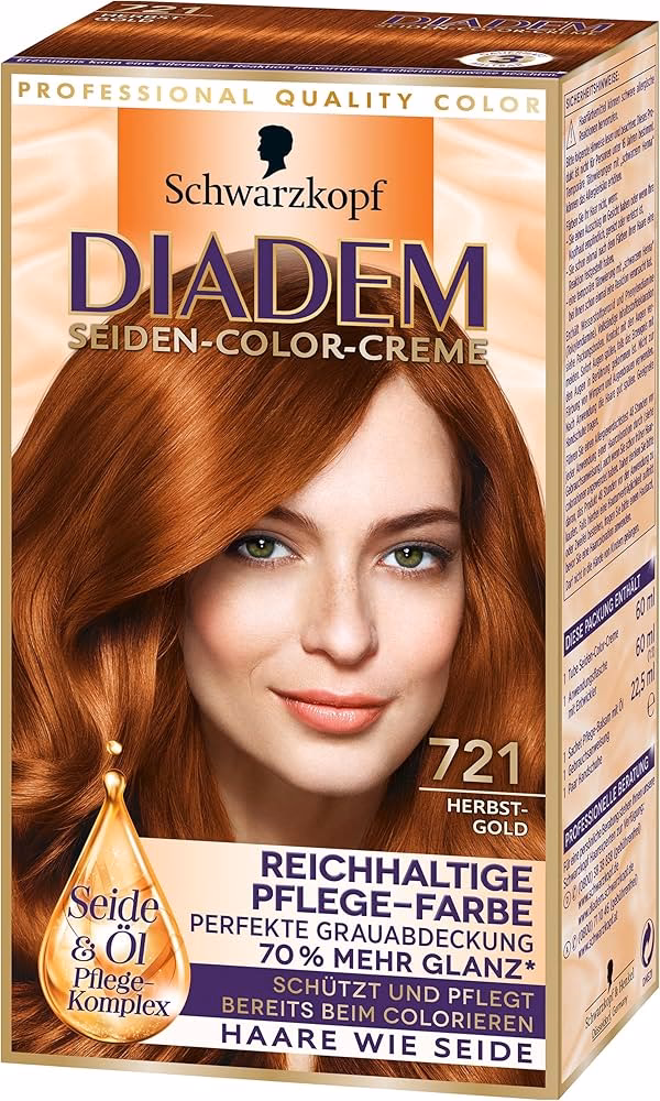 Die SCHWARZKOPF DIADEM 3 in 1 Pflege-Color-Creme, hier am Beispiel der Nuance 721 Herbst Gold, ist ein Paradebeispiel für ein Produkt, das eine umfassende Lösung für die Haarfärbung und -pflege bietet. Ihr Name „3 in 1“ ist Programm, denn sie vereint drei wichtige Funktionen in einem: