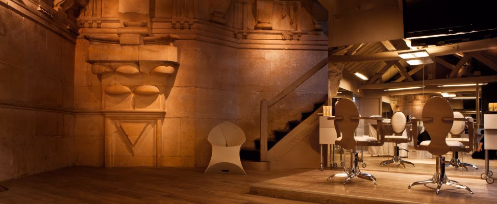 Cette ancienne teinturerie, spécialisée dès 1700 dans la coloration rouge des pantalons de l’infanterie Française, accueille les coiffeurs Didact qui viennent quotidiennement poser leurs lames et leurs pinceaux en plein cœur de ce mythique quartier de l’Odéon.