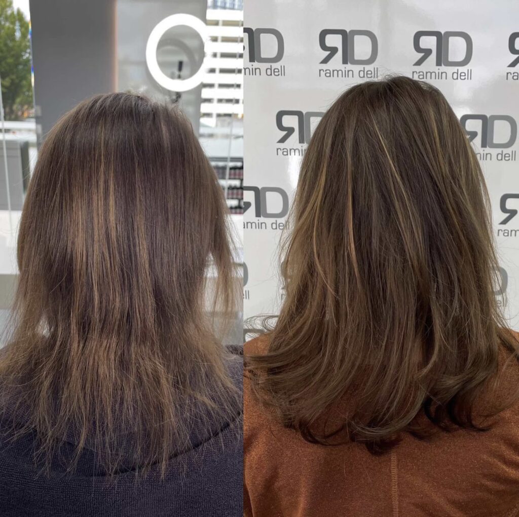 | Haardichte | Licht, einzelne Strähnen | Sichtbar dichter, voller Haarschopf |