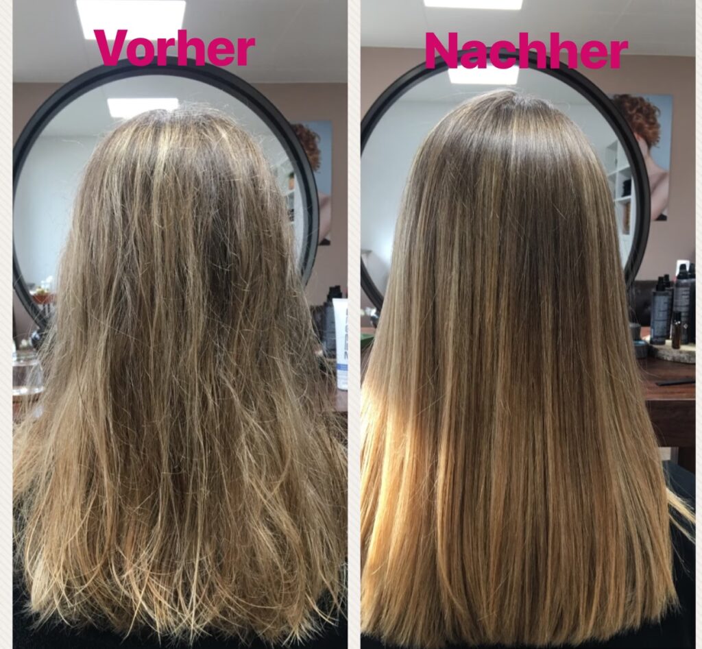 - Reduzierter Haarbruch: Einer der wichtigsten Vorteile: Durch die Stärkung der Haarstruktur wird Haarbruch erheblich reduziert. Das Haar ist weniger anfällig für Spliss und bricht nicht mehr so leicht ab, was zu längerem und vollerem Haar führt.